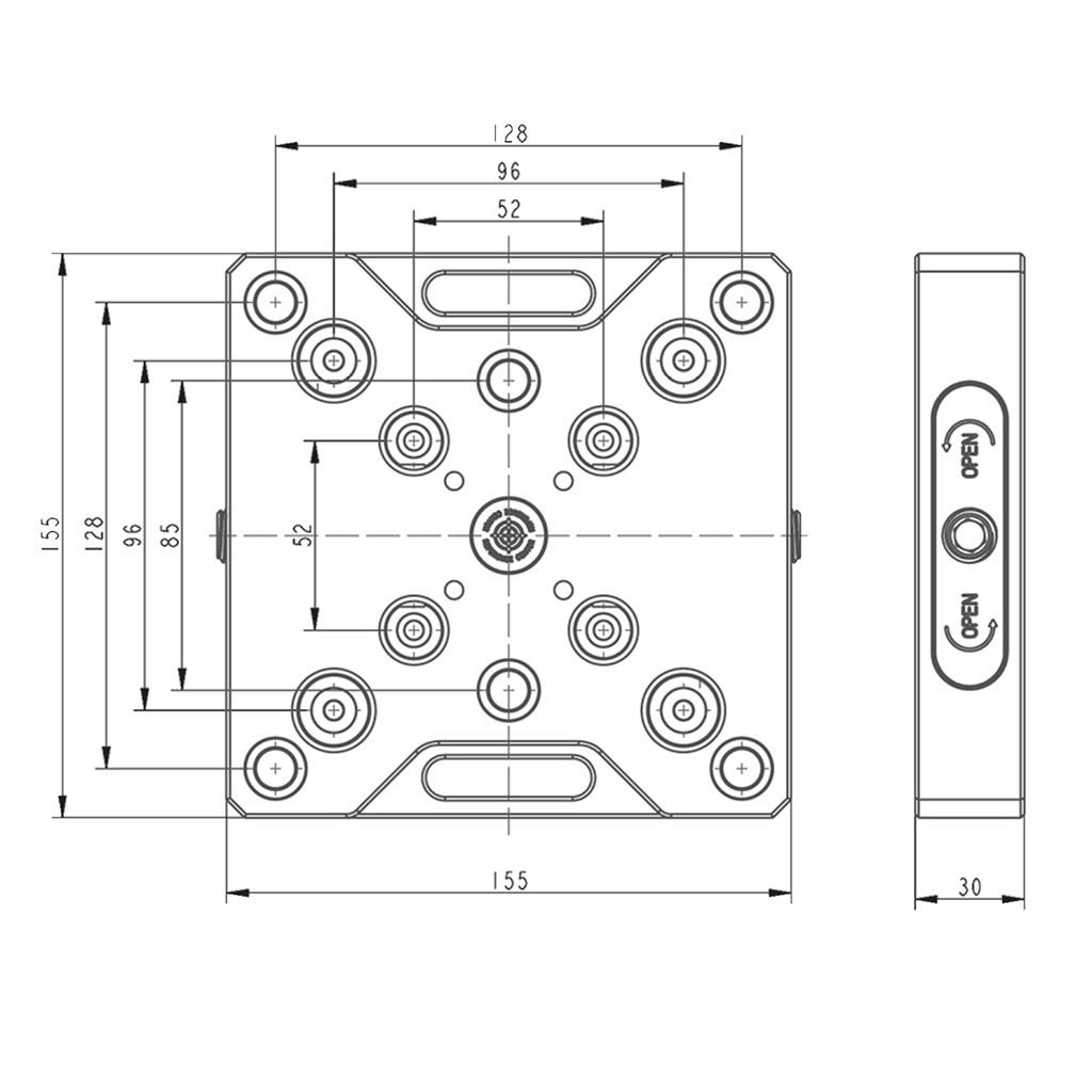尺寸: 155x155x30毫米 重复定位精度:0.005毫米 净重:4.6公斤