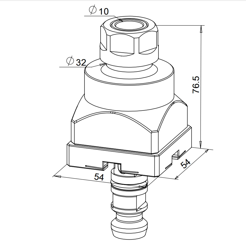 与3R-659.20-P兼容,是夹持圆棒工件的完美解决方案。夹头能够适配行业标准的 ER20 夹头,能够夹持直径在Φ3~13mm范围内的工件。